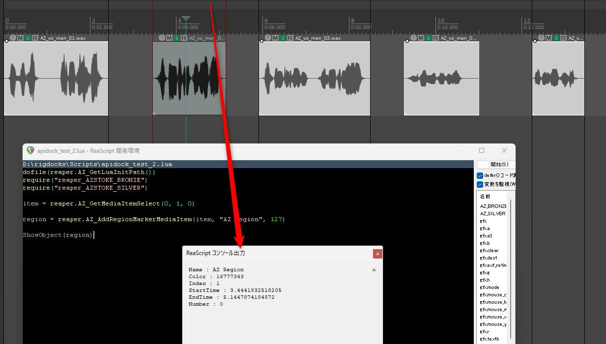 regionObj = reaper.AZ_AddRegionMarkerMediaItem(item, regionName, separator)
