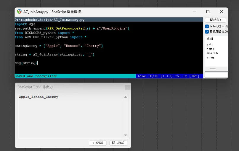 joinedString = reaper.AZ_JoinArray(stringArray, separator)