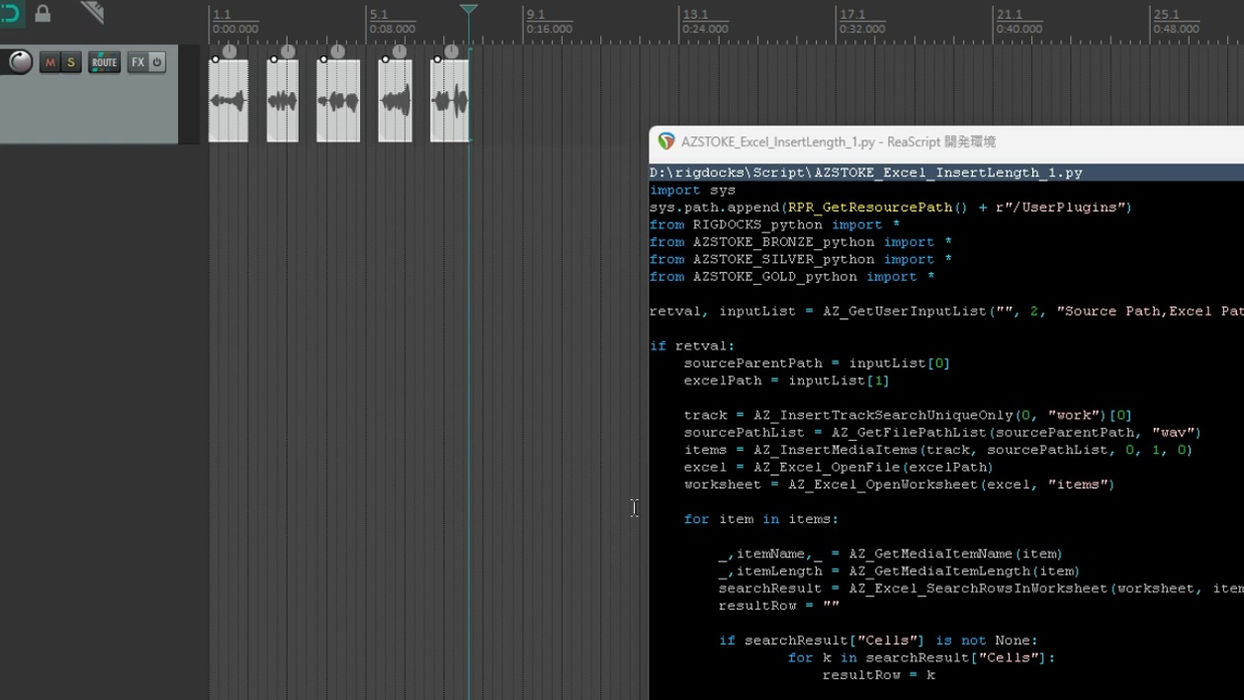 音声ファイルをReaperにインポートし、その長さをExcelに記録する